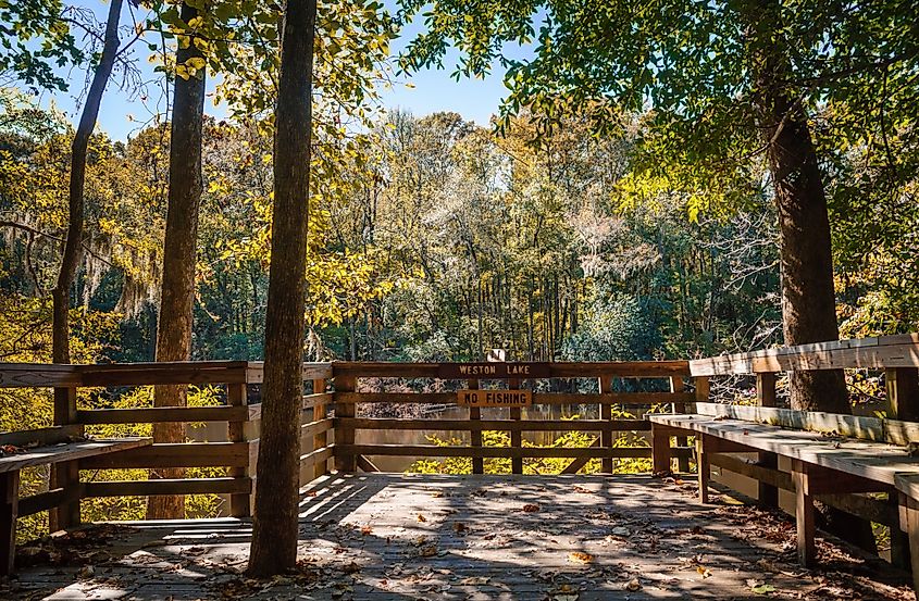 独立戦争の歴史が息づくマスグローブ ミル州立史跡は、豊かな歴史と秋に輝く美しい風景を兼ね備えています。クリントンの近くにあるこの場所には、紅葉の森、静かな川、歴史的建造物の間を曲がりくねった自然遊歩道があります。この公園の風光明媚なエノリー川の眺めは特に秋に魅惑的で、反射する水が岸沿いの鮮やかな紅葉を増幅させます。独立戦争の歴史に関するガイド付きツアーや教育イベントが用意されており、訪問者は自然の美しさを楽しみながらサウスカロライナの過去とつながる機会を得ることができます。