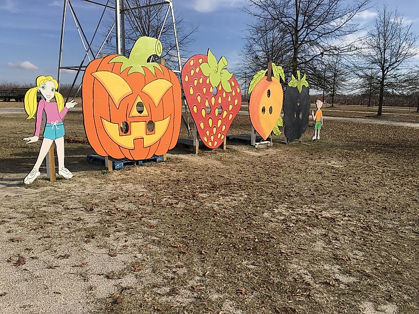 マクロード農場にある顔の切り抜きのある特大の果物の展示。編集クレジット: MicheleMidnight / Shutterstock.com