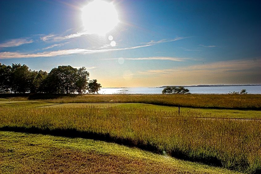 Rum Point Seaside Golf Linksは、Assateague National Seashore Parkを見下ろすSinePuxent Bayのベルリンにあります。このスコットランドスタイルの18ホールのパブリックコースは、ピート染料によって設計され、1997年にオープンしました。これは、フェアウェイとグリーンに曲がった草を特徴とする地域で唯一のコースの1つです。コースの長さは72、7,001ヤードで、122の傾きがあり、72.6の評価があり、17ホールの穴は湾を直接眺めています。現場での他の施設には、運転範囲、プロショップ、グリーンのパッティングが含まれます。