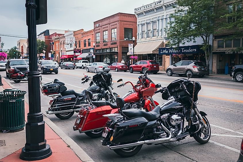 ワイオミング州シェリダンのダウンタウンにある夕方のメインストリート。画像クレジット Ems Images via Shutterstock
