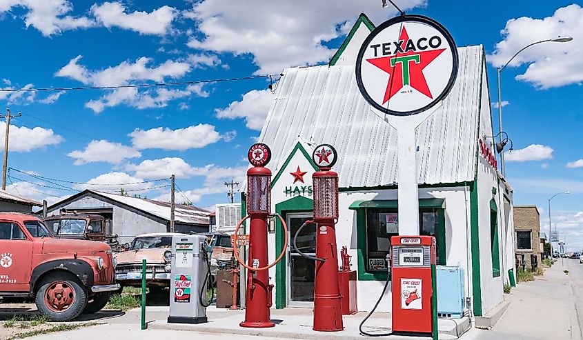 ワイオミング州ローリンズの高速道路沿いにあるオールド・テキサコ・ガソリンスタンド。画像クレジット Paul Brady Photography、Shutterstock より