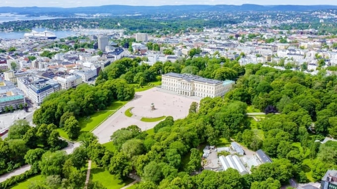1848 年に完成したクリーム色の宮殿は、オスロ市街を見渡す素晴らしいロケーションを誇っています。比較的小さな規模で警備員も少ないにもかかわらず、宮殿には広大な庭園があり、一年中一般公開されています。この驚くほどオープンな雰囲気は、王室の邸宅に期待されるものとはまったく異なり、穏やかな雰囲気を作り出しています。