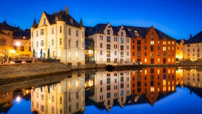 オーレスンは、見事なアールヌーボー様式の建築で有名な町で、人気の観光地です。スンモア アルプスをドラマチックな背景として、フィヨルドに囲まれた島群に位置するこの絵のように美しい港町は、ノルウェーの首都オスロから飛行機でわずか 1 時間です。