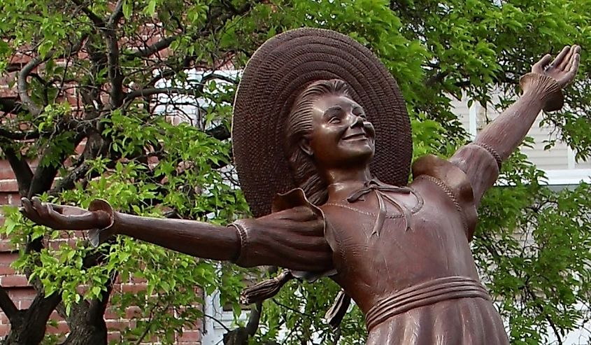 ニューハンプシャー州リトルトンの公共図書館の前にあるポリアンナの銅像。画像クレジット:ポリアン像、Wikimedia Commons経由