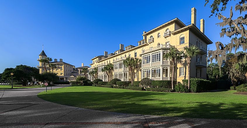 ジョージア州ジキル島のリバービュードライブにある歴史的なクラブハウスの外観。編集クレジット:Nagel Photography / Shutterstock.com