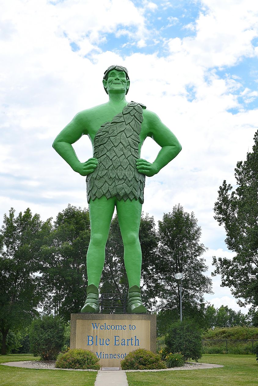 ジョリー グリーン ジャイアント像は、現在でもエンドウ豆やトウモロコシが栽培され缶詰にされているグリーン ジャイアント カンパニーと市の協会のシンボルです。編集クレジット: Steve Cukrov / Shutterstock.com