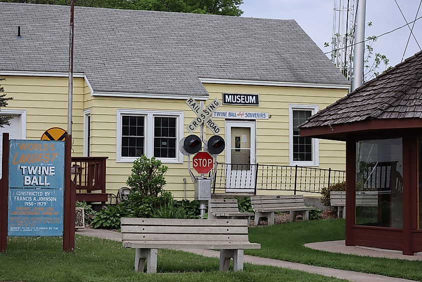 Weird Al をプレイリストに入れ、ピクルス ウインナーとダイエット チョコレート ソーダを詰めて、ミネソタ州最大の麻ひものボールを探しに出かけましょう。他の町が世界最大の麻ひも玉の権利を主張しているかもしれないが、ウィアード・アル・ヤンコビッチはその町についての曲を書いていない。彼は、直径12フィート、重さ17,400ポンドのベーラー麻ひものボールの本拠地であるミネソタ州ダーウィンについて書いた。フランシス A. ジョンソンは 1950 年 3 月に麻ひもを巻き始め、29 年間毎日 4 時間巻き続けました。現在、一般の人々が触れることを防ぐため、メインストリートにある町の公園の向かいにある密閉されたガゼボに保管されています。
