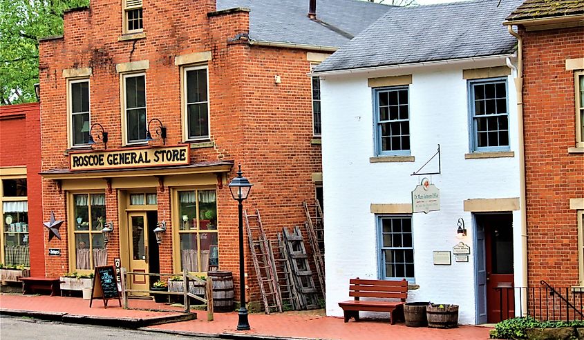 ロスコー ビレッジは、オハイオ州の歴史的な町であり、1816 年にコショクトンに建てられたランドマークです。画像クレジット Madison Muskopf、Shutterstock より