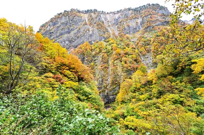 上谷高原:地滑りや土砂の堆積によってできた幅の広い川。 「越後の上高地」とも呼ばれるこの地域は、特に紅葉の時期は糸魚川の中でも最も美しい景観の一つです。雪解けの時期は川が増水する可能性があるので、訪れる際は注意してください。