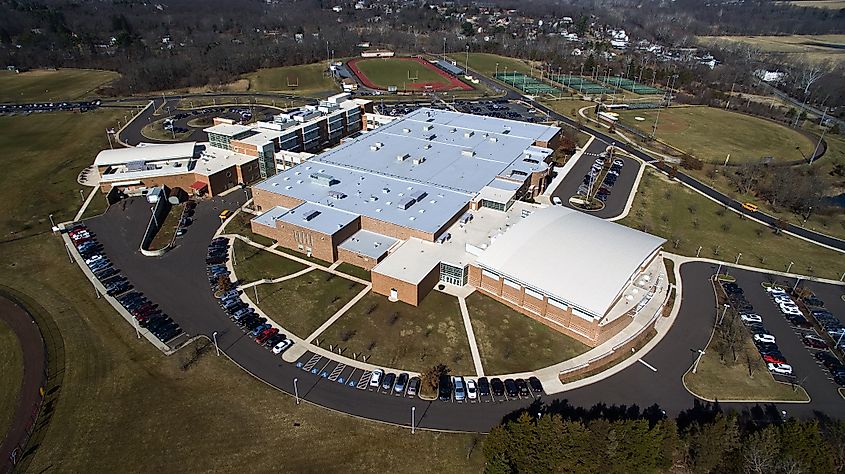ペンシルベニア州カレッジビルにある真新しい屋根の公立高校と施設。画像: ユーザー FMS57 (Shutterstock 経由)。