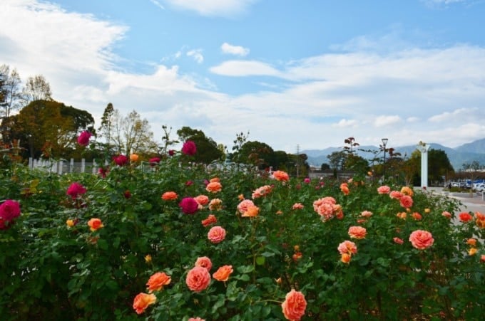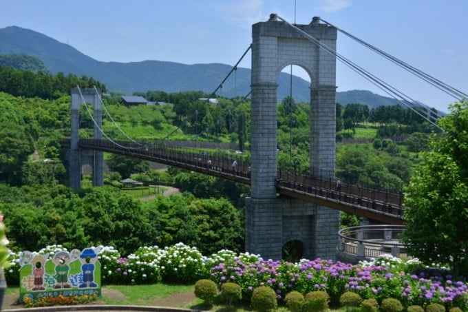 公園の最も印象的な機能の1つは、「Kaze No Suspanse Bridge」です。これは、高さ約35メートルで約267メートルに及ぶものです。橋の周りのエリアは季節の花で飾られており、絵のような環境を作り出しています。