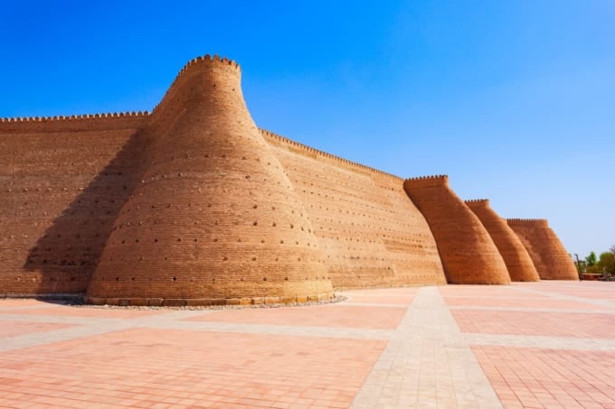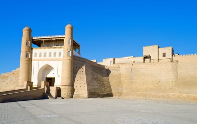 人工の城を囲む城壁は、ひっくり返した盃のような形をしています。最初のアーク城は紀元前 4 世紀頃に建てられました。何度も破壊と再建を繰り返しましたが、長きにわたりブハラの街を守り続けてきました。