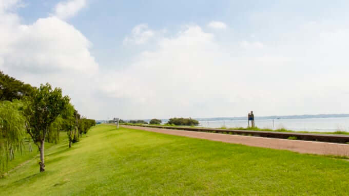 湖のウォーターフロントとアユミザキカノンの緑の調和は、シーンを絵のように見せます。天文台にはパビリオンも装備されているため、観光中に休憩するのに理想的な場所です。