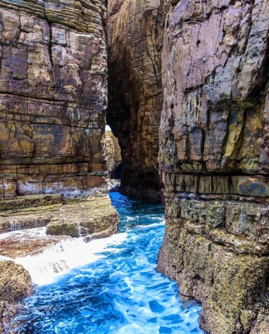 ジャガ渓谷は、海洋浸食によって形成された高さ 50 メートルの見事な崖です。海からこの険しい風景を見上げると、かなりの威圧感を感じるかもしれません。切り立った崖とはるか下の荒れ狂う波の光景は、息をのむような、しかし神経をすり減らすような体験を生み出します。安全柵等はございませんので足元には十分ご注意ください。
