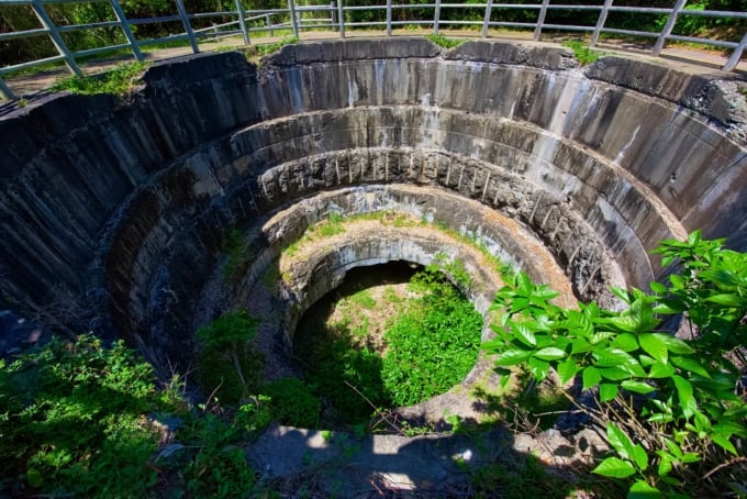 この地下7階建ての秘密要塞は戦後解体されましたが、巨大な砲台跡が戦争の惨禍を今に伝えています。内部は自由に見学できるので、懐中電灯などの持参をおすすめします。上からは、かつて大砲が置かれていた巨大な大砲の穴も見ることができます。