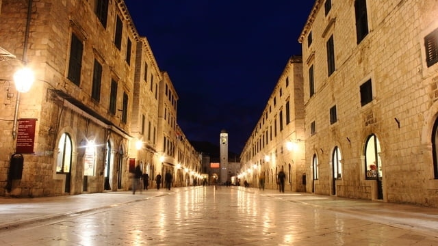 石造りの建物が立ち並ぶ石畳の通りは風光明媚で、多くの写真家を魅了しています。この通りはドブロブニク観光の中心となるので、何度も訪れることになるでしょう。通りの終わりにはルジャ広場があり、教会などのランドマークがいくつかあります。ルジャ広場の時計台はこの地域のシンボル的なランドマークなので、ぜひチェックしてみてください。