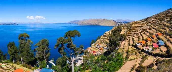 ペルー側ではトトラと呼ばれる葦を積み上げて作った浮島「ウロス島」ツアーが有名ですが、ラパス側では「太陽の島(イスラ・デル・ソル)」へのツアーが一般的です。太陽の島に上陸したら、古民家を見学したり、段々畑を眺めながらトレッキングしたりして、雰囲気を味わうのもいいでしょう。