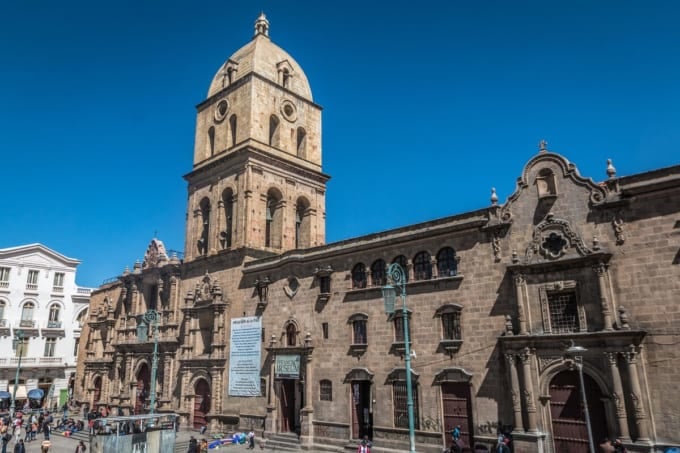 ムリーリョ広場の周囲には歴史的建造物が立ち並び、最も著名な植民地時代の建物の 1 つがラパス大聖堂です。