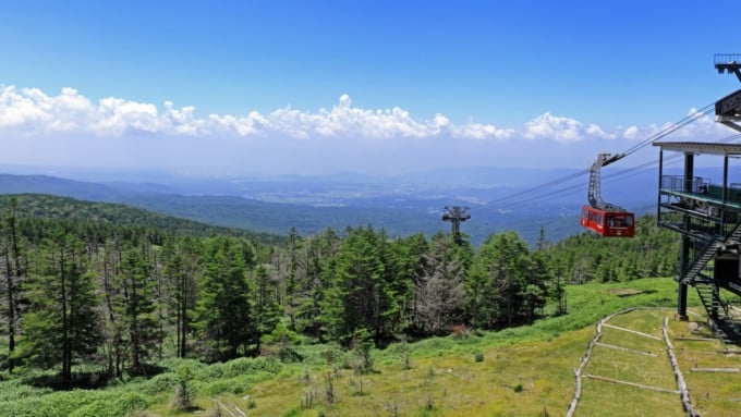 Tateshina Farm Gondola Liftに乗ると、北アルプスの息をのむような景色、農場の動物とシラカバコゲンのパノラマ風景が提供されます。ゴンドラのサミット駅の近くにも犬が走っている犬が走っているため、ペットと一緒にテテチナを訪れる人にとっては便利です。