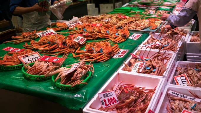 冬から春にかけては、加納ガニ(ズワイガニの雄)や香箱ガニ(ズワイガニの雌)が豊富に集まり、まさに圧巻です!カニのファンにとって、この市場はまさに夢のような市場です。カニの季節以外でも、新鮮な旬の味覚がたくさんあります。