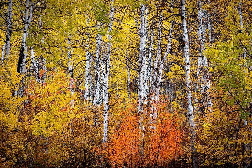 サウスダコタ州西部の町スタージスは、毎年 8 月に国中から観光客が集まるスタージス モーターサイクル ラリーで最もよく知られていますが、美しい秋の旅行先でもあります。毎年 9 月には、リンゴやカボチャの愛好家は秋祭りとオクトーバーフェストに参加できます。この祭りでは、ライブ音楽、子供向けアクティビティ、季節の料理、そして人気のスタイン クロールが特色です。混雑を避けて秋の色彩を楽しみたい場合は、風光明媚なヴァノッカー キャニオン ループに沿ってドライブしてください。秋の冒険気分の旅行者は、美しいシルバン湖にあるブラック エルク ピーク トレイルをハイキングし、頂上からの色鮮やかなパノラマの景色を堪能してください。スピアフィッシュ キャニオンを訪れることもできます。あるいは、地元の紅葉をもっとリラックスして見学したい場合は、数多くある風光明媚な脇道の 1 つをドライブして、ルート沿いにそびえ立つポプラやシラカバの木の深紅や金色の色合いを鑑賞することもできます。