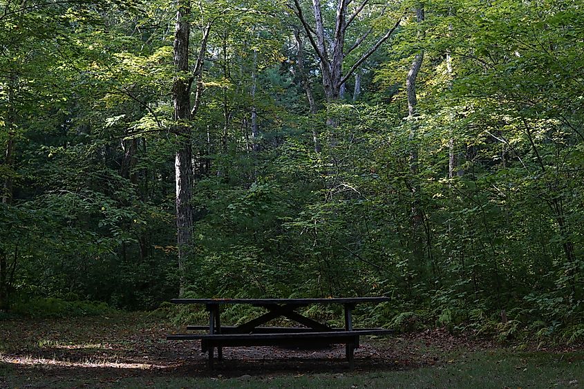 コネチカット州パチャウグ州立森林公園のピクニック テーブル。画像クレジット: U+1F360 (ウィキメディア コモンズ経由)。
