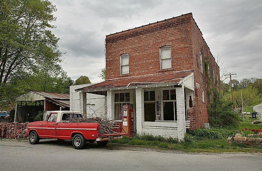 イリノイ州ポモナの古いガソリンスタンド。 Wikimedia Commonsを介した画像クレジットDaniel Schwen