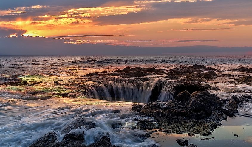 オレゴン州ヤハッツ、トールの井戸に打ち寄せる波。