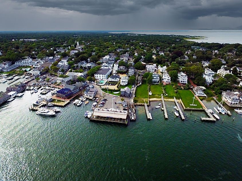 エドガータウンはマーサズ ヴィニヤード島で最初の植民地時代の入植地で、広い通りや白い下見板張りの家に捕鯨で富を築いた痕跡が今も残っています。町の中心部のほとんどは歩きやすく、1672 年に建てられたヴィンセント ハウス博物館など、元船長の家の前を通るレンガの歩道が整備されています。港には個人所有のヨットや小規模な作業船団が並び、すぐ沖合には今でも地元の言い伝えの対象となっている SS シティ オブ コロンバスの難破現場があります。エドガータウンは『ジョーズ』のアミティ島のロケ地としても使われており、その事実は店の看板や地元のトリビアナイトでよく取り上げられます。