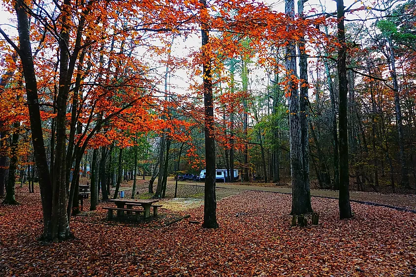 ミシシッピ州ルーズベルト州立公園の美しい秋の色。