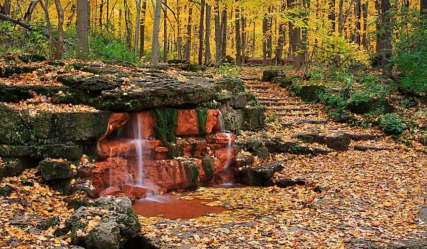 イエロー スプリングスには州立公園や緑地が数多くあり、秋の観光客に素晴らしい景観体験を約束します。訪れるのに最適な時期は 10 月下旬で、すべての道はグレン ヘレン自然保護区の険しい荒野につながっています。この 1,000 エーカーの公園には、古木や無数の野生の花が生い茂り、少なくとも 32 マイルのハイキング コースがあります。