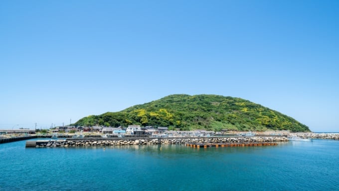 姫島は玄界灘に浮かぶ人口約200人の小さな島です。島の名前は、安産の神である豊玉姫命を祀る姫島神社に由来します。島の北東部には、豊玉姫誕生の地と言われるパワースポット「産土の穴」があります。