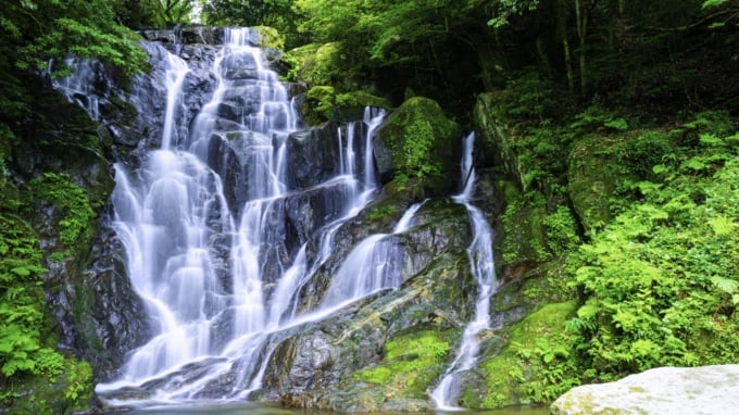 福岡を代表する景勝地のひとつ「白糸の滝」は、糸島南部の鋼山の中腹にあります。その名の通り、白い糸のように緩やかに流れる滝は、息を呑むような美しさです。秋の紅葉の名所としても有名です。訪れた際には、ぜひ名物の流しそうめんを味わってみてください。自然に囲まれながら食べる食事は格別!