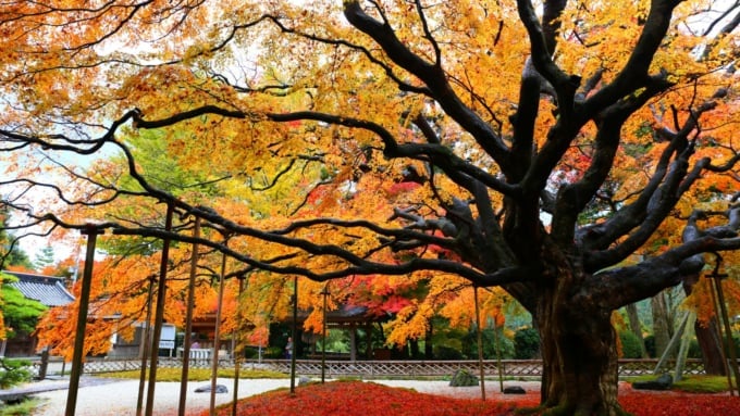 紅葉の名所としても有名なお寺です。樹齢400年の壮大なカエデの木が見事な赤に色づき、その美しさを一目見ようと多くの観光客が集まります。 11 月にピークシーズンが到来し、ゲートが開く 1 時間以上前から長い列ができます。近隣の山道は渋滞が多いため、優先アクセスが可能な糸島市コミュニティバスのご利用をおすすめします。