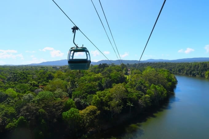 帰りの旅行のために、物事を切り替えて、世界の遺産に登録されている熱帯雨林にゴンドラに乗っているSkyrail Rainforest Cablewayを取ります。この壮大なケーブルウェイは、手付かずの熱帯雨林のユニークな空中景色を提供し、上からその手つかずの美しさに感謝することができます。ゴンドラには3種類のタイプがありますが、2つのユニークな機能が際立っています。