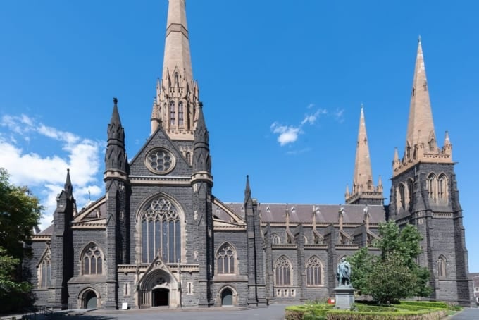 メルボルンの多くの歴史的な建物の中で、聖パトリック大聖堂は、街のスカイラインを支配する103メートルのそびえ立つ尖塔で際立っています。オーストラリア最大のゴシック様式のカトリック大聖堂であり、青色で作られた外観があり、雄大で頑丈な外観を与えています。