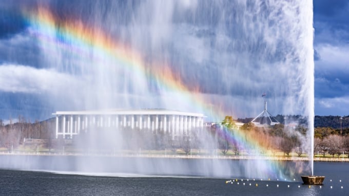 東から西に伸びるバーリー・グリフィン湖はキャンベラの中心であり、国会議事堂、旧国会議事堂、国立肖像ギャラリー、オーストラリア国立博物館、オーストラリア戦争記念館などの主要な国家ランドマークに囲まれています。また、オーストラリア国立図書館とオーストラリア国立ギャラリーの本拠地でもあります。どちらも、コレクションだけでなく、驚くべき建築のためにも必見のアトラクションです。