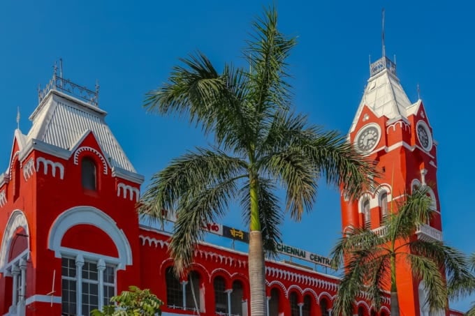 チェンナイ本土の玄関口である中央駅は、南インドで最も混雑する駅の 1 つです。イギリス領インド帝国時代の 1873 年にマドラス中央駅として開業し、戦後に再建されました。