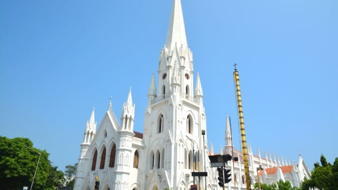 チェンナイのビーチ近くにあるサントメ大聖堂は、キリストの12使徒の一人、聖トーマスの墓の上に建てられたと言われる教会です。歴史的証拠はありませんが、聖トーマスはキリスト教を布教するためにインドに渡り、チェンナイで殉教したと言われています。キリストの弟子の墓の上に建てられたとされる大聖堂は、サントメ大聖堂を含めて世界に3つしかありません。インドに貴重なキリスト教の大聖堂があるとは驚きです。