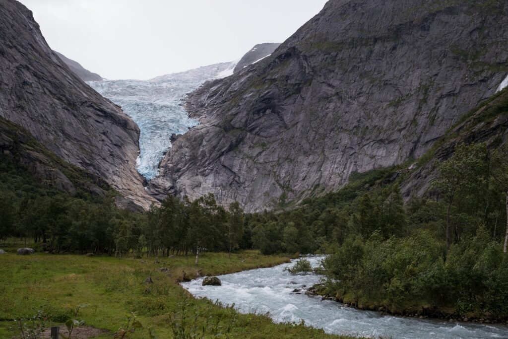 フィヨルドの町オルデンの近くには、壮大なブリクスダール氷河を眺める素晴らしい 2.5 マイルのハイキングコースがあります。この絵のように美しいルートは、ヤギが放牧されている緑の草原と、流れ落ちるクライヴァフォッセンの滝を巡ります。
