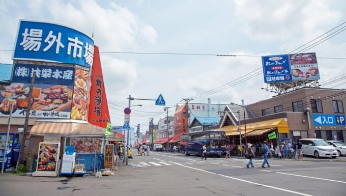 北海道最大の卸売市場に隣接する場外市場は、北海道の特産品を味わえる人気の観光スポットです。約60店舗が並び、海産物や果物、お菓子、お土産品など、さまざまな商品が揃います。ウニ、カニ、サーモンなどの新鮮な地元の特産品が揃っており、お土産選びにも最適です。海鮮料理店も多く、イクラ丼などの美味しい料理も楽しめます。