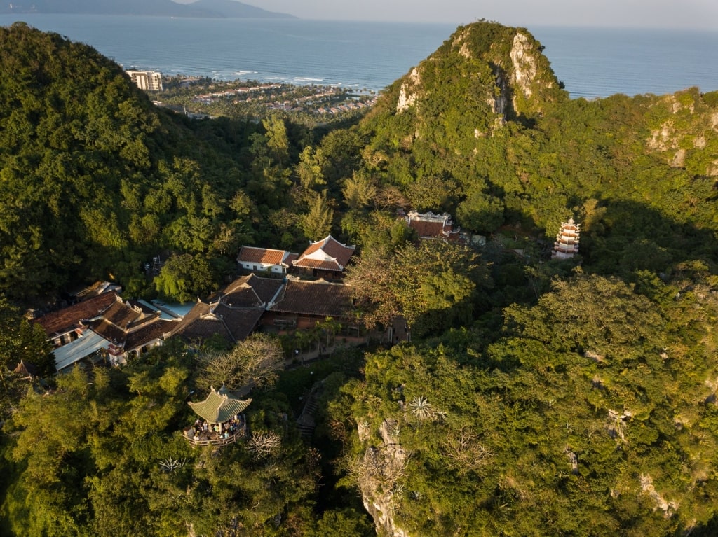 ダナン市とホイアン市の間にあるマーブル マウンテンは、土、水、火、金属、木という 5 つの要素にちなんで名付けられた 5 つの石灰岩と大理石の丘の集まりです。