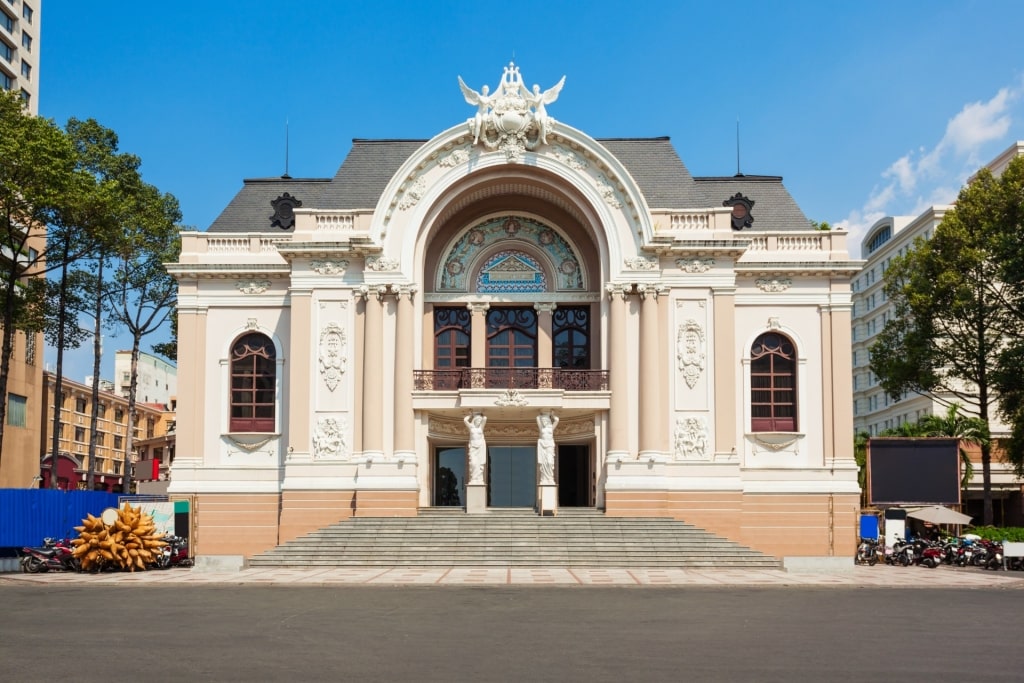 1898 年にフランス第三共和国の華やかな様式で建てられたホーチミン市立劇場は、元のサイゴン劇場やベトナム共和国時代の国会議事堂など、いくつかの名前の変更を経てきました。