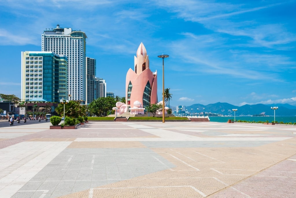 ニャチャンのビーチ沿いにあるこの蓮の形をした建造物は、そのユニークなデザインにより、この海辺の街のアイコンとなっています。花に似たオレンジ色の塔は、トランフー大通り沿いのメインビーチの端で確かに目立ちます。