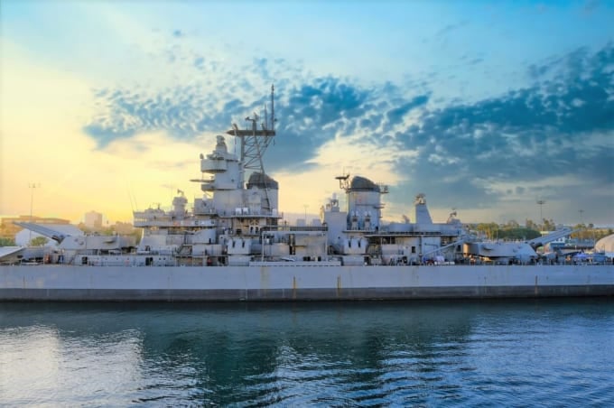 ロサンゼルスのサンペドロ港にある戦艦アイオワ博物館は、史上最も強力な戦艦の 1 つを展示する海洋博物館です。全長約 270 メートル、米海軍史上最大の主砲を搭載したその圧倒的な大きさと巨大な砲塔が際立ち、訪問者は畏敬の念を抱きます。