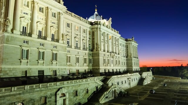 これはマドリッドの歴史の象徴である壮大な王宮です。スペインの君主たちは何世紀にもわたってここに住んでおり、かつてはオリエンテ宮殿として知られていました。現在は王室の住居ではありませんが、宮殿は依然として重要な国家行事に使用されています。宮殿は 1734 年に火災で完全に焼失しましたが、再建後に美しく修復され、1755 年に再オープンしました。