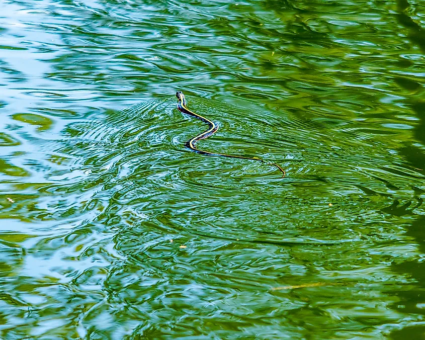 一般的なガーターヘビは水中を滑ります。