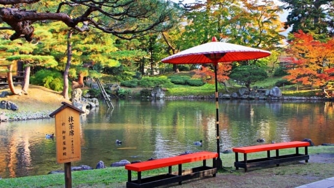 戦時中は戊辰戦争の復興拠点として使われた歴史があり、現在は17,000平方メートルの庭園が国の史跡に指定されている。その中心となるのは、300 年前の茶屋、石灯籠、そして「男滝」と「女滝」として知られる滝に囲まれたハート型の池です。調和のとれた庭園のデザインにより、訪問者はよく整備された小道を散策しながらその美しさを楽しむことができます。静かで優雅な体験をするには、御薬園が最適です。