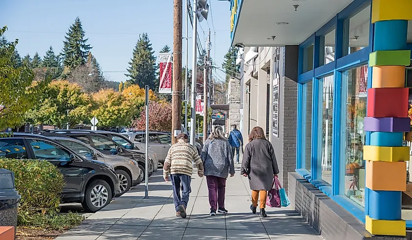 ワシントン州ベインブリッジ島のダウンタウン。 Image Credit Shutterstock経由のMichael Gordon