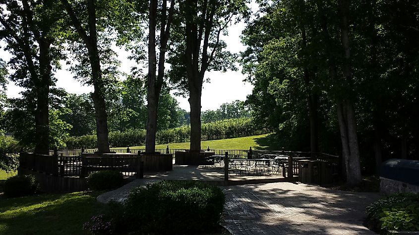 ウェストバージニア州クラブ オーチャードにブドウ園があるダニエル ヴィンヤーズのツリー デッキ。画像クレジット: PumpkinSky、CC BY-SA 3.0、 経由ウィキメディア・コモンズ